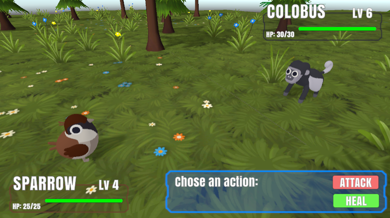 Small Animals' Worth is a game where tiny animals battle against larger ones, created using Unity. The game features three levels, each with a different theme and animals. As you progress, the levels get progressively harder. 🐦